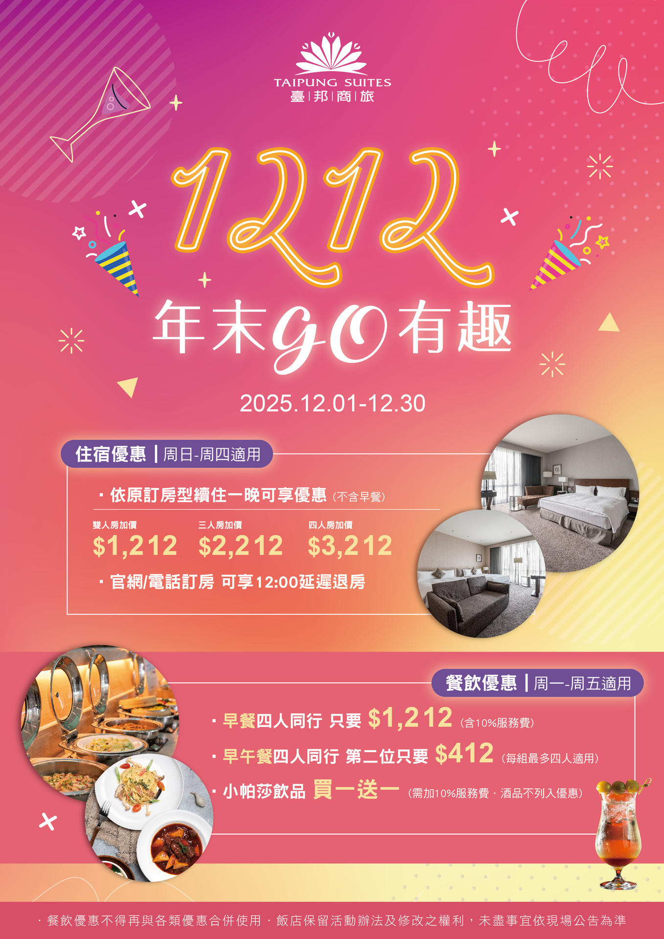 《-1212 年末GO有趣|住房 × 餐飲同步大優惠-》